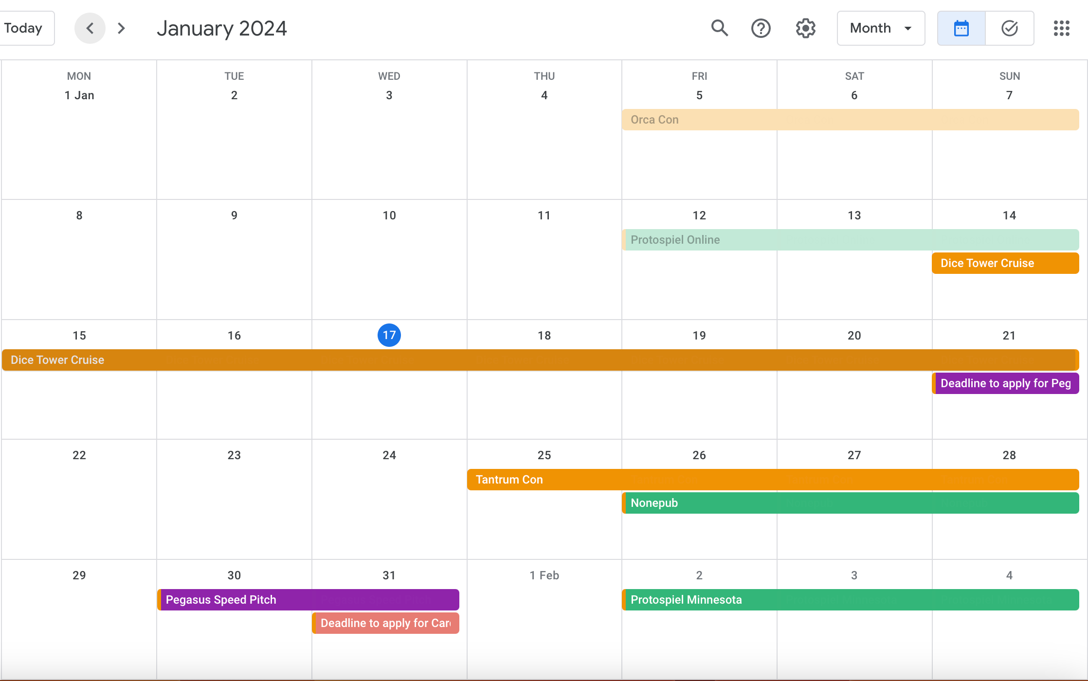 Join my membership program to get access to my Board Game Designer Google Calendar that I am always updating!